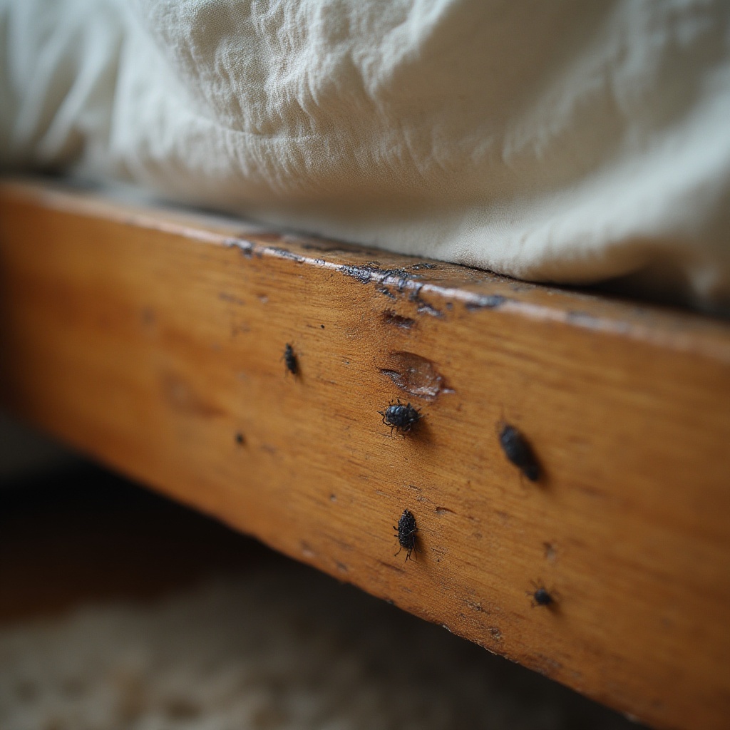 In this case, the activity wasn’t visible at first glance. The bed looked clean, but closer inspection showed signs of a bed bug infestation hidden inside the frame and along the headboard fixings — a common setup in London flats where space is tight and furniture sits close to walls.