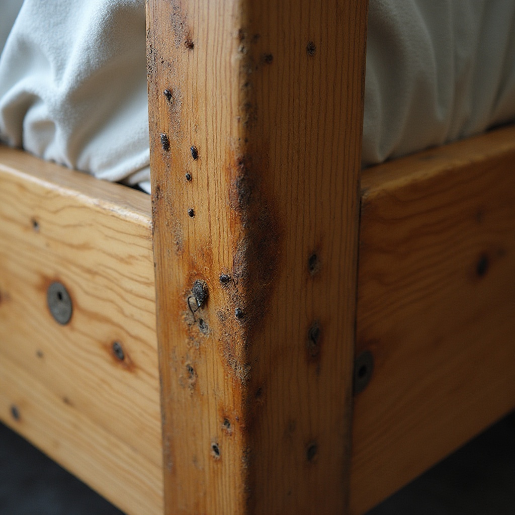 At first glance, the mattress showed only light spotting, which can easily be overlooked. However, once the bed frame was checked more closely, clear signs of bed bugs were found inside the joints and along the headboard fixings. These are typical hiding points, especially in properties where beds are placed tightly against walls.